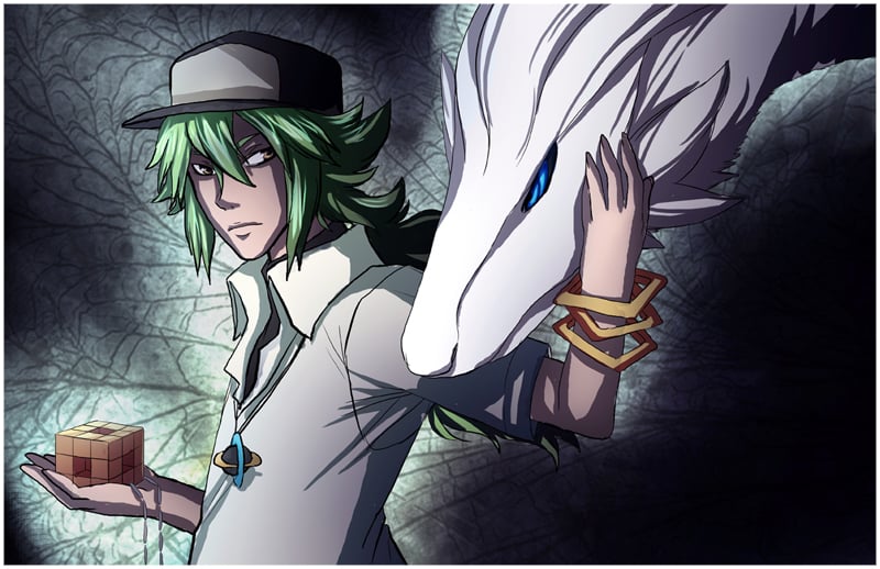 11x17 fanart print on cardstock, of N the king of Pokémon with Reshiram